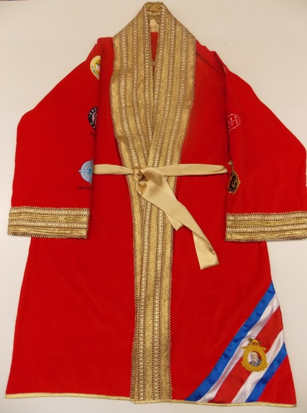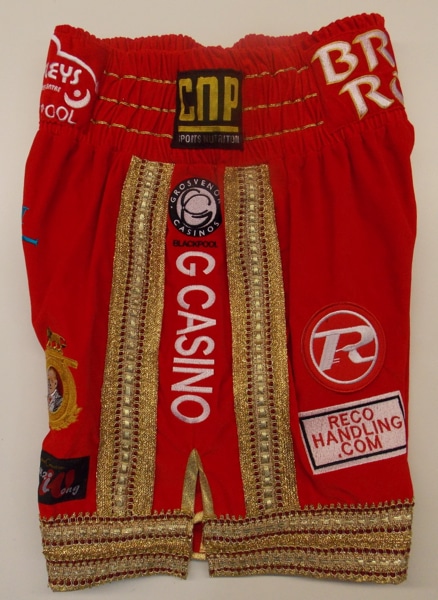 Brian went for the British Title belt short and gown design we did for his and what has become a custom design for him.  We have done this short in a few different colour combination now all in the velvet and all work really well and are very classy and give that rich feel.  We can make these shorts in any colour, from any farbic, satin, velvet, wet look, sparkle, fur, etc just let us know what you require using the contact us button, calling us or printing off one of the design your own templates.  We will always get back to you with a quote.