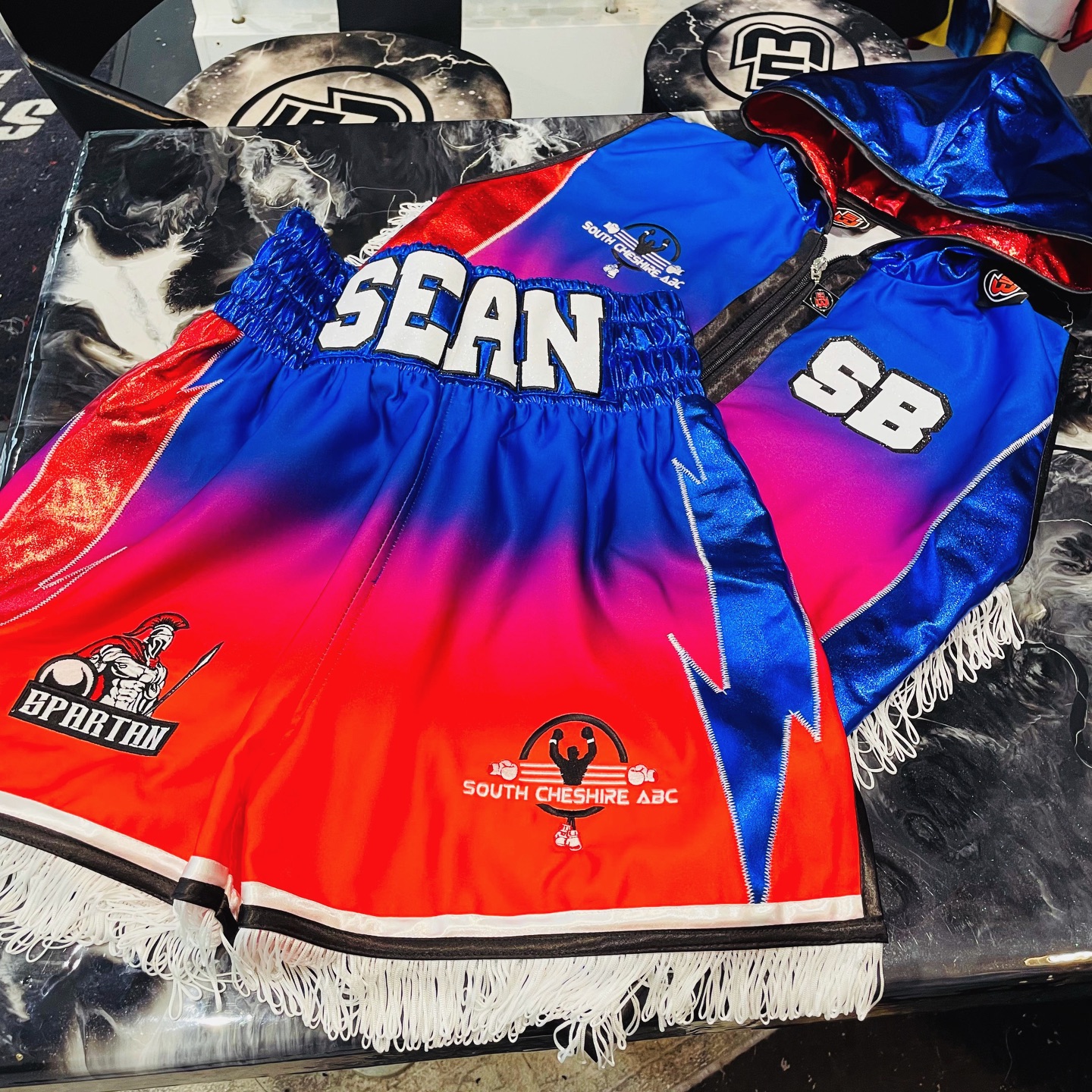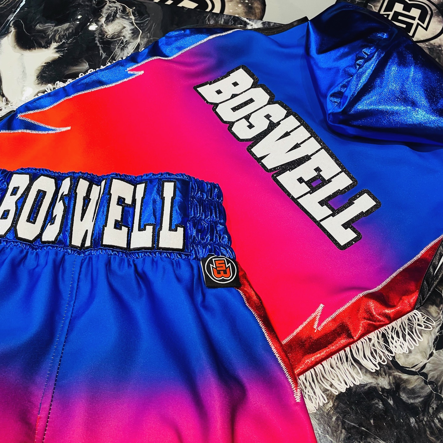 Designing a custom amateur boxing kit is always an exciting challenge that starts with collaboration. For Sean Boswell’s boxing kit, the Suzi Wong team worked closely with him to understand his vision and personal style. The goal was to create a look that not only reflects his personality but also enhances his performance in the ring.