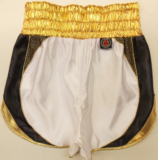 We also took some different style jackets down to our consultation and he really liked the look and feel of the gown, Muhammed Ali style he called it. He wanted this more simplistic that the shorts and opted just for a gold sparkle hood with gold wetlook trimming and black logos.