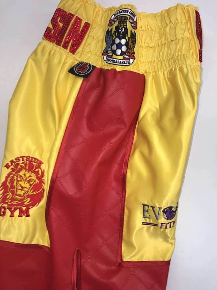 List for us, colours, fabrics and what you want on there, names, etc and we can price for you. Use the website for inspiration on what you would like. If the name is a bit much for you, just opt for normal standard embroidery or ask for a price with both. We are always happy to help in creating your dream custom boxing ringwear.