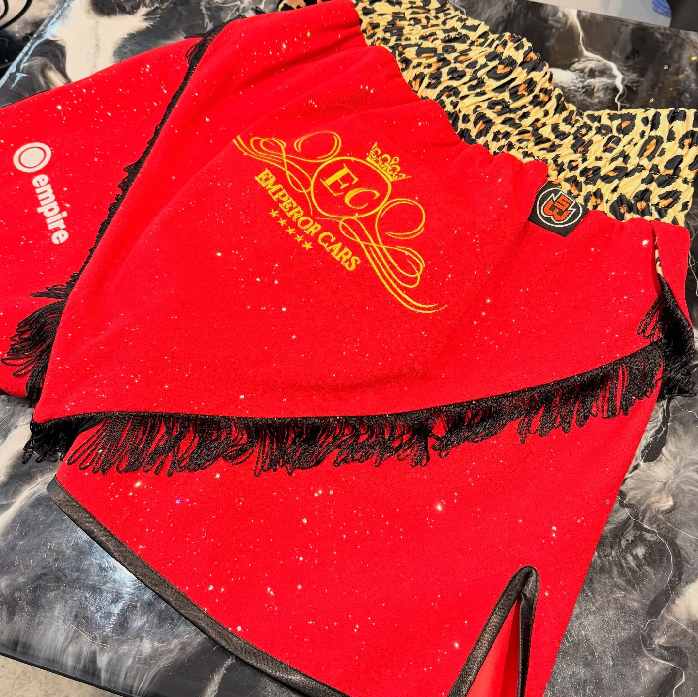 Red Johnson’s brief centred on a modern, confident aesthetic—something that would read clearly under bright arena lights and still feel timeless across multiple camps. We developed a striking contrast between a rich shimmer red body fabric and leopard accents, balancing statement design with a streamlined silhouette that flatters in motion and photographs brilliantly for media.