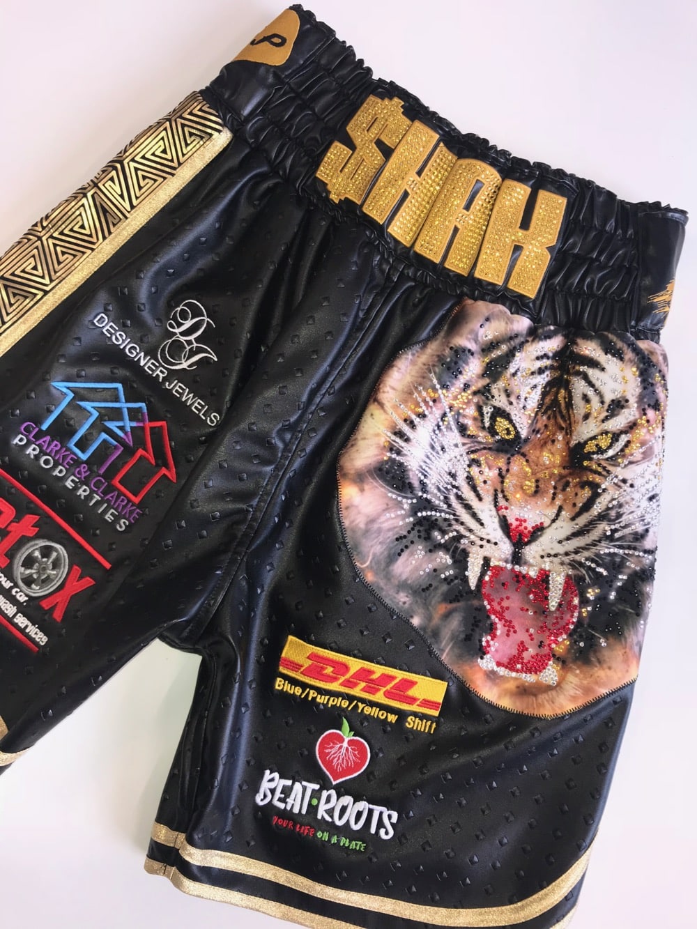 Shakan Pitters Austrian Crystals Tiger Boxing Shorts