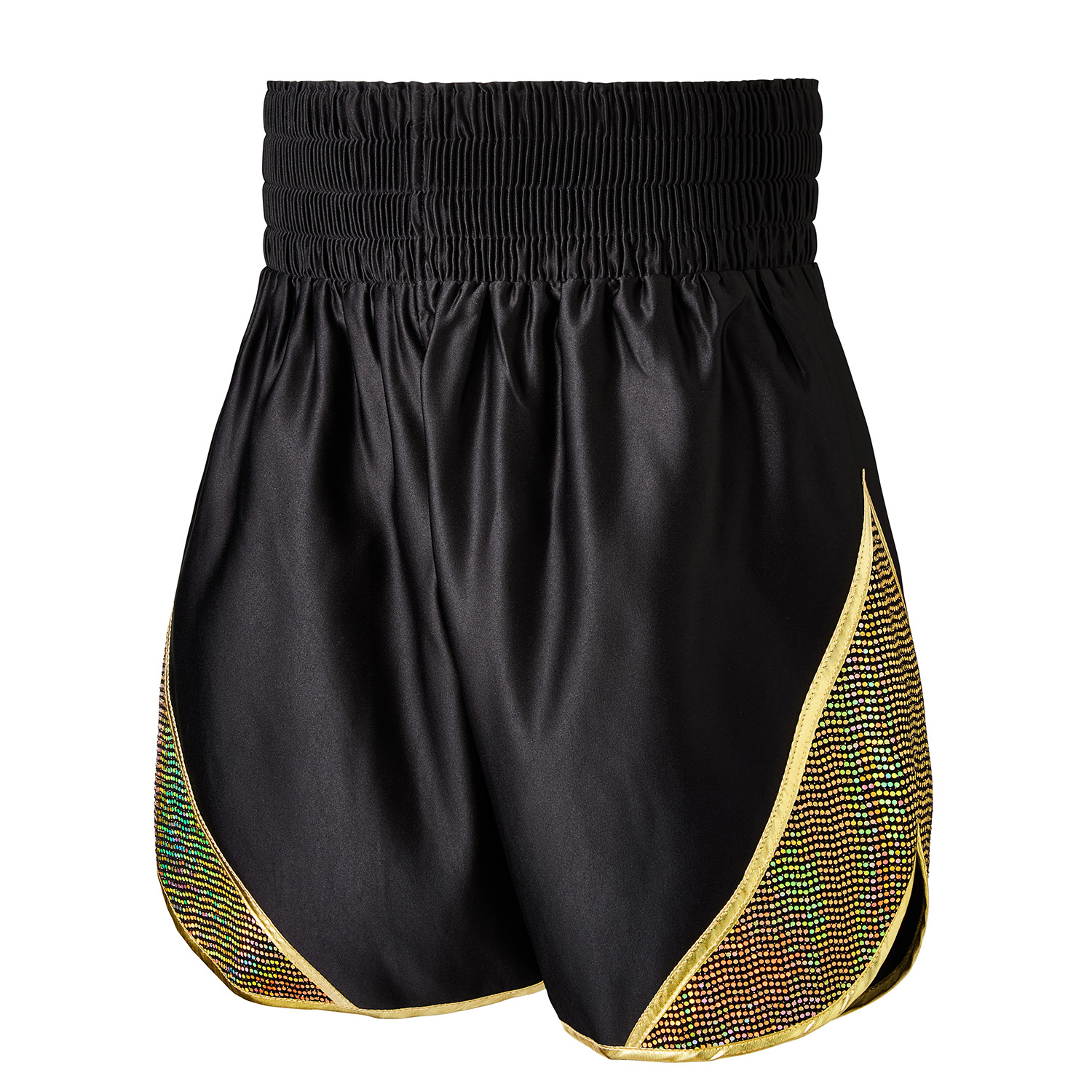 Let young fighters bring power, confidence and presence into every bout. The Suzi Wong Kid’s Destruction Boxing Shorts are built from premium black satin and finished with a bold gold patterned side panel that hits hard under the lights.