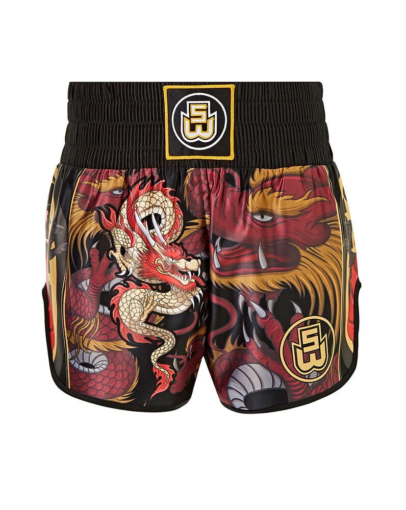 Suzi Wong Dragon Black, Red & Gold Muay Thai Shorts