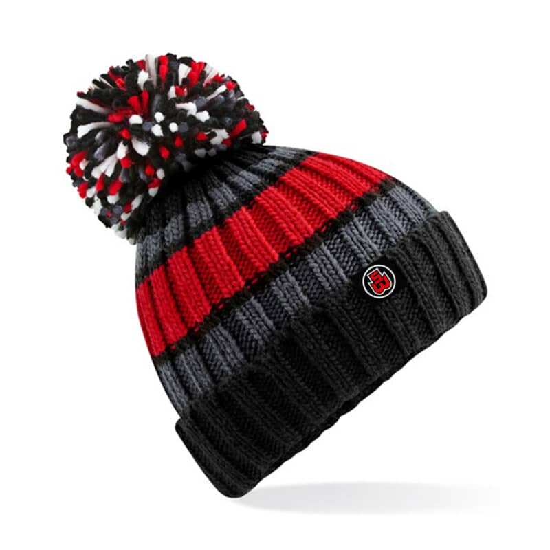 Keep warm in style this winter, in the Suzi Wong Stripe Bobble Hat.