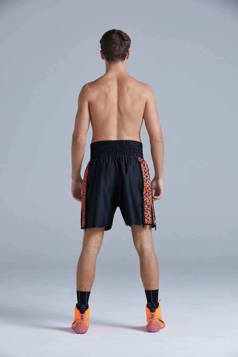 The Wild Boxing Shorts by Suzi Wong are available in two eye-catching colourways, each offering a bold and unique look for the ring. The first option features sleek black satin with vibrant orange cheetah print side panels, creating a fierce, energetic design. The second colourway combines crisp white satin with striking black and orange leopard print side panels, offering a sharp contrast that accentuates movement and style. Both versions come with luxurious tassels for added flair and motion, making these shorts perfect for fighters who want to stand out and perform with confidence. Designed for those who embrace their wild side, these shorts offer both high-performance functionality and unmatched visual impact.