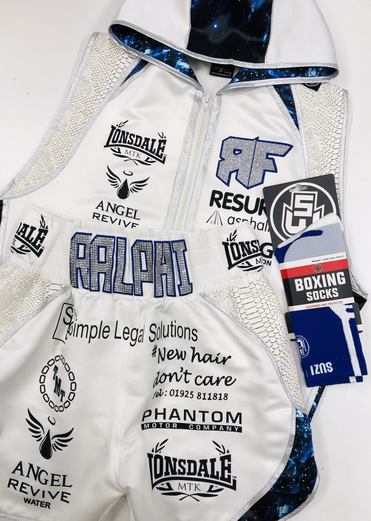 Also sent to Rocky were the new SW Boxing Socks for 2019. A Black and White and Blue and White to choose from on fight night.
