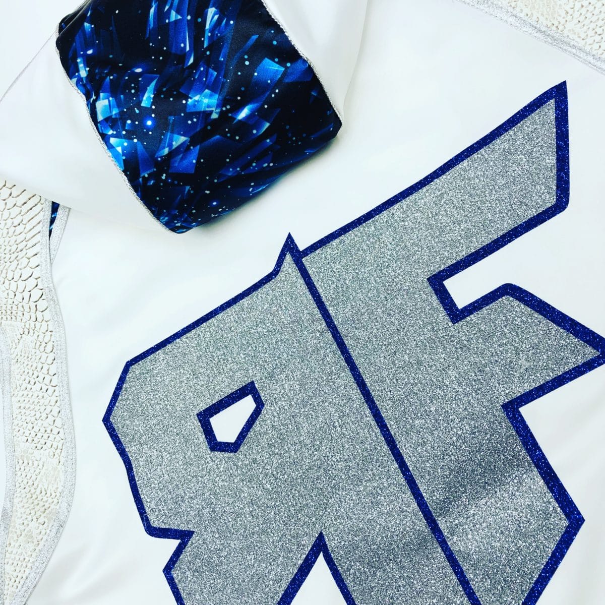 We have produced a spectacular kit for Rocky celebrating the biggest fight of his career to date. The base of the shorts is a glossy white satin, which continues to and around the waistband. The side panelling is made up of a sleek white snakeskin and completed with a dazzling blueprint at the bottom of each leg. The shorts are completed with the names of Rocky’s children on the waistband in glittering silver Austrian Crystals. The shorts contain numerous sponsors, as well as the WBA badge, however, the most poignant addition is the tribute to the 96 Liverpool fans who passed away at Hillsborough in 1989.
